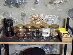 ![]() Çift kişilik bornoz seti. | ![]() Kıyafetlerinizi organize edebileceğiniz açık bir gardırop bulunmaktadır. Ek olarak banyo havluları, bornozlar, saç kurutma makinesi, buharlı ütü, mini ütü masası, portatif vantilatör, ilave örtüler, peçete ve sinek kovar ürünleri sunulmaktadır. |
